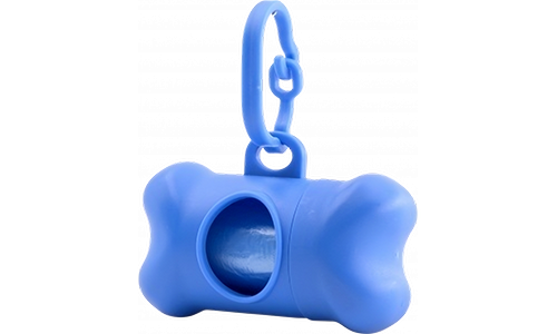 • Blue bone-shaped dog poop bag dispenser, convenient for dog owners. Easily attaches to leashes for quick access to bags.